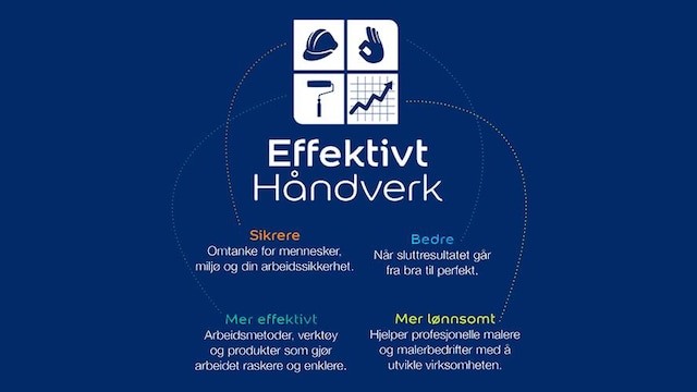 Et lønnsomt helhetskonsept for profesjonelle malere. Når du er Nordsjö-partner, hjelper vi deg med å få gjort mer – på kortere tid og med et bedre resultat. Profesjonelle malere som jobber effektivt, sparer både tid og penger. Effektivt håndverk er et helhetskonsept som gjør hverdagen din enklere. Vi tilbyr deg svært gode produkter, verktøy og maskinelt utstyr. I tillegg gir vi informasjon om effektive og ergonomiske arbeidsmetoder, og holder kurs på løpende basis. Vi vil hjelpe deg med å utføre arbeidet sikrere, bedre og mer effektivt. Til sammen bidrar dette til å utvikle virksomheten din, slik at også lønnsomheten blir bedre. Vi jobber målrettet for å finne smarte løsninger som gir deg fornøyde kunder