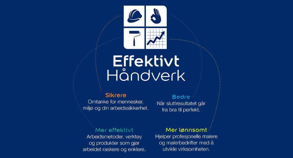 Et lønnsomt helhetskonsept for profesjonelle malere. Når du er Nordsjö-partner, hjelper vi deg med å få gjort mer – på kortere tid og med et bedre resultat. Profesjonelle malere som jobber effektivt, sparer både tid og penger. Effektivt håndverk er et helhetskonsept som gjør hverdagen din enklere. Vi tilbyr deg svært gode produkter, verktøy og maskinelt utstyr. I tillegg gir vi informasjon om effektive og ergonomiske arbeidsmetoder, og holder kurs på løpende basis. Vi vil hjelpe deg med å utføre arbeidet sikrere, bedre og mer effektivt. Til sammen bidrar dette til å utvikle virksomheten din, slik at også lønnsomheten blir bedre. Vi jobber målrettet for å finne smarte løsninger som gir deg fornøyde kunder